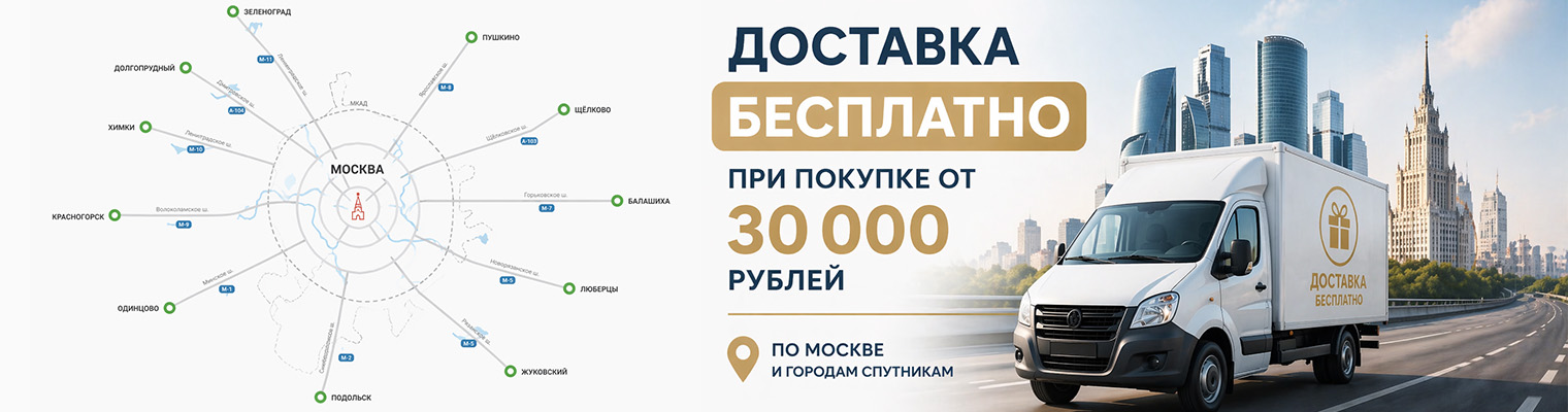 Бесплатная доставка по Москве и ближайшему Подмосковью при заказе от 30 000 рублей. Звоните!